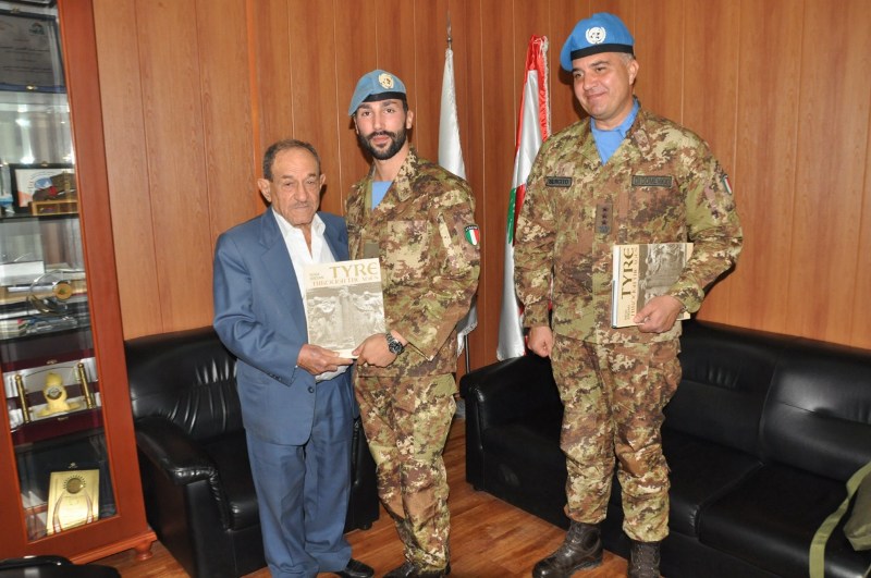 وختاما قدم دومينيكو للحسيني شعار الكتيبة الايطالية الذي بدوره قدم كتابا تاريخيا عن مدينة صور للعقيد دومنيكو والملازم انجليستا.