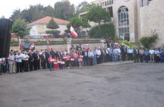 اقام الحزب الديموقراطي اللبناني مديرية الجرد – بحمدون وقفة تضامنية في باحة القصر البلدي في صوفر، في اطار دعم الجيش اللبناني في الحرب التي يخوضها في عرسال لحماية الوطن، حضره رئيس اتحاد بلديات الجرد الاعلى بحمدون الدكتور يوسف شيا ورؤساء بلديات شارون نبيه الاحمدية، مجدلبعنا محمد عبدالخالق، شانيه امين ابي المنى، اغميد فؤاد علامة، رئيس منتدى الجرد الانمائي المختار فؤاد جبور مسؤول الحزب الديموقراطي في الجرد غسان الصايغ وعدد من مسؤولي الديموقراطية، مدير فرع الحزب التقدمي الاشتراكي في مجدلبعنا رشيد عبدالخالق وعدد من المخاتير والفاعليات وحشد كبير من الحضور.