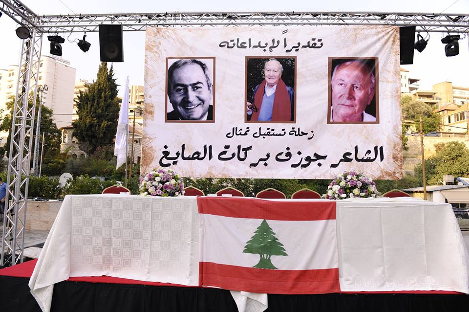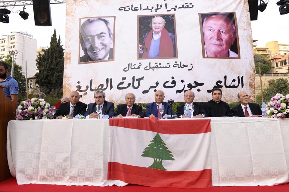 تقديرا” لإبداعاته زحلة استقبلت تمثال الشاعر جوزف بركات الصايغ في الحديقة العامة الممشية، من تنظيم مجلس بلدية زحلة معلقة وتعنايل، الكلية الشرقية، مجلس قضاء زحلة الثقافي، وأصدقاء الشاعر، حيث أزيح الستار عن تمثال الشاعر الصايغ بحضور الوزير نقولا فتوش، النائب أنطوان أبو خاطر، معالي الياس بيك سكاف، رئيس بلدية زحلة معلقة المهندس جوزف دياب المعلوف، وأعضاء المجلس البلدي، سيادة المطران نيفون سيقلي، ممثل المطران اسبريدون خوري الأرشمندريت تيودور غندور، وفعاليات زحلة والمنطقة. تلاه حفل خطابي في صالة كريستال أوتيل قادري الكبير – زحلة، حيث ألقى رئيس بلدية زحلة معلقة المهندس جوزف دياب المعلوف كلمة تقديرية لإبداعات الشاعر: <فمن يتصفّح الإرث الثقافي” لشاعرنا الزحلاوي” كما يحلو أن يُقال عنه يَتبيّن غزارة الإنتاج وتنوّعه إن كان شعراً أو نثراً. ويستكشف فيه محطات خالدة في سيرته الأدبية على مدى أكثر من ثلاثة ارباع القرن إن كان في “الندوة اللبنانية” أو في العديد من المحافل والصحف اللبنانية والأجنبية إن كان في لبنان أو في العاصمة الفرنسية باريس حتى غدا شاعرنا بامتياز” زحلاوي في باريس، وشبه باريسي في زحلة” من ضمن توزيع إقامته و نشاطاته شتاءً في باريس وصيفاً في زحلة>. وأضاف: < وما قيام مجلس بلدية زحلة-معلقة وتعنايل بالتعاون مع الكلية الشرقية ومجلس قضاء زحلة الثقافي وأصدقاء الشاعر بالدعوة إلى إزاحة الستار عن تمثاله في حديقة الشعراء (الممشية) بجانب كبار الشعر والأدب الزحلي إلاّ عربون محبة وتقدير لشاعر زحلي سطّر بقلمه أساس خلوده في عالم الشعر والأدب>.