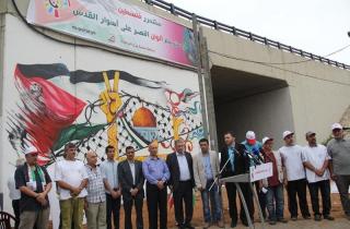 وقال: “هنا على بوابة مطار بيروت اوقفت القوات الفلسطينية- اللبنانية المشتركة جحافل القوات الاسرائيلية الغازية للبنان، واثناء الاجتياح في العام 1982 لمدة 88 يوما، وسطرت أروع ملاحم البطولة، ومن بعد الامتار القليلة من المطار من بوابة بيروت نرسل التحية، وهذه اللوحة وهذا التلاحم الفلسطيني- اللبناني الى الأهل في فلسطين الصامدة الى غزة، في هذا الزمان زمن الانتصارات على الغطرسة والجبروت الصهيوني”.
