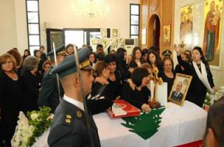 وتقبلت عائلة الشهيد التعازي في صالون كنيسة مار الياس وعند الساعة الثالثة اقيم قداس ترأسه كاهن الرعية الاب نعيم حداد وعاونه لفيف من الكهنة وشارك فيه ممثل نائب رئيس مجلس الوزراء وزير الدفاع سمير مقبل وقائد الجيش العماد جان قهوجي العميد نظرت قبريليان، والنواب: هنري حلو، فادي الهبر وفؤاد السعد، النائب السابق انطوان اندراوس، ممثل مدير عام قوى الامن الداخلي النقيب وسام حداد، ممثل مدير عام الامن العام النقيب طارق الشوفي، ممثل مدير عام امن الدولة المقدم اريج قرضاب، ممثل مدير عام الجمارك العقيد نزار الجردي، قائد اللواء الحادي عشر العميد نزيه الحديري على رأس وفد من كبار الضباط، امين عام الحزب الشيوعي اللبناني خالد حدادة على رأس وفد من الحزب، رئيس الحركة اليسارية اللبنانية منير بركات، وفد من الحزب التقدمي من عاليه والجرد يتقدمه خضر الغضبان وجنبلاط عزيزي، رئيس اتحاد بلديات الجرد الاعلى بحمدون يوسف شيا، رؤساء بلديات ومخاتير المنطقة وحشد من الاهالي والوفود من مختلف مناطق الجبل.