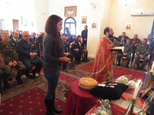 واكد ان “يسوع لم يجامل اليهود، لذلك شفى المريض في السبت وتعرض لكل ما تعرض له من تعيير وصلب وعذاب. الا انه اراد ان يكون الطريق والحق والحياة. والانسان وان صلب او استشهد يبقى رأسه مرفوعا، ونحن نحيي جيشنا لانه ايضا يرفع لنا رأسنا. لذلك نتذكر بعيد الميلاد السيدة مريم التي لم تضعف امام اهانات البشر وولدت الطفل يسوع وهي عذراء، وصمدت امام صلب ابنها وانتظرت القيامة ولم تنحن. والقديسون المسيحيون لم ينحنوا وايضا شهداؤنا الابطال لم ينحنوا، ومنهم الشاب نديم الشهيد البطل، وقد بقي حاملا للصليب على صدره وسيوزع مثيله على الجميع، اضافة الى بطاقة من مجلس الرعية تحمل صورة الشهيد القديس ديمتريوس العظيم في الشهداء وقد كان شفيعا له، وقد سلك على طريقه في الشهادة. فالصليب الذي استشهد من اجله مثل القديسين هو وحده يمنحنا حياة ابدية ويخلصنا”.