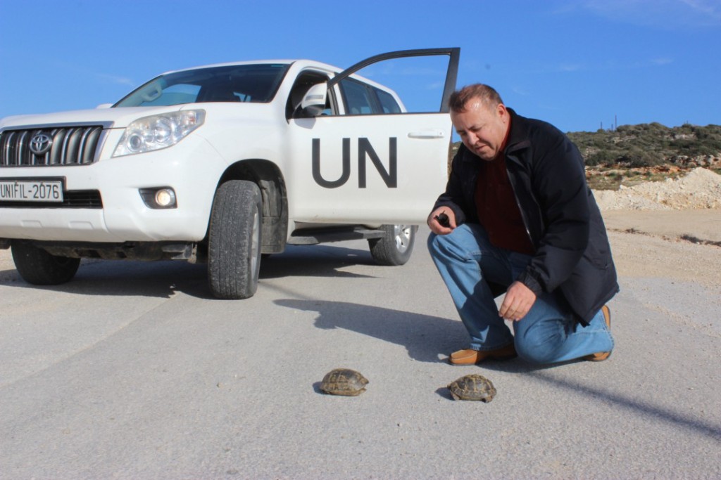 سلحفتان قطعتا الطريق على دورية لليونيفيل وضابطها أنقذهما