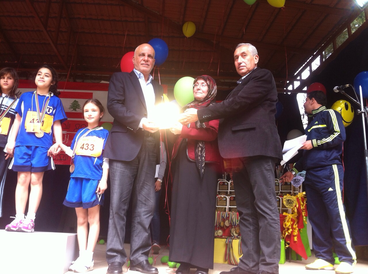 وبعد انتهاء السباق اقيم حفل توزيع الكؤوس والدروع على الفائزين، في حضور النائب علي خريس، قائمقام صور محمد جفال، رئيس اتحاد بلديات قضاء صور عبد المحسن الحسيني، امين عام اتحاد العمال القوى اللبنانية نعمة الله بجاني، رئيس الاتحاد اللبناني لالعاب القوى رولان سعدة، رئيس الهيئة الوطنية للطفل اللبناني – فرع صور المربي نبيل بواب وحشد من رؤساء المجالس البلدية والاختيارية وجمعيات رياضية وممثلين عن الصليب الاحمر اللبناني والاجهزة الامنية واهالي البلدة.