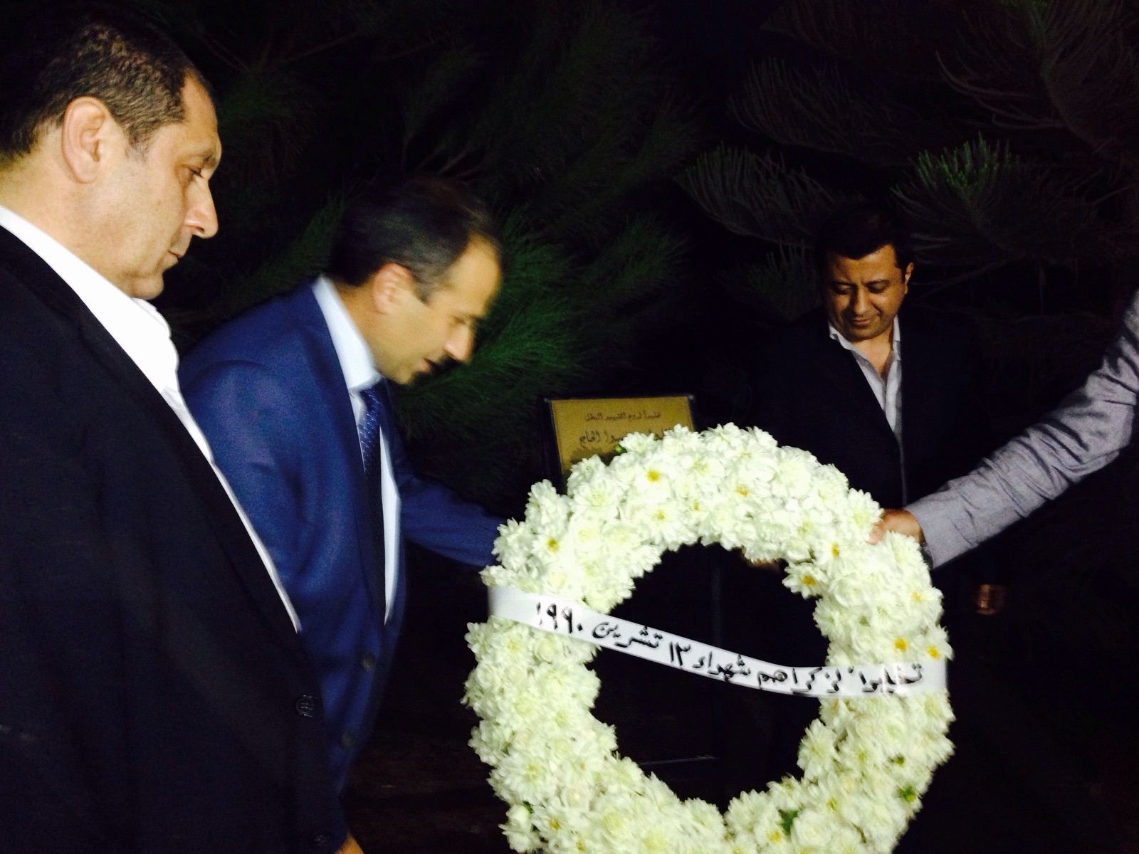 ثم وضع الوزير باسيل إكليلا من الزهر على ضريح الشهيد.