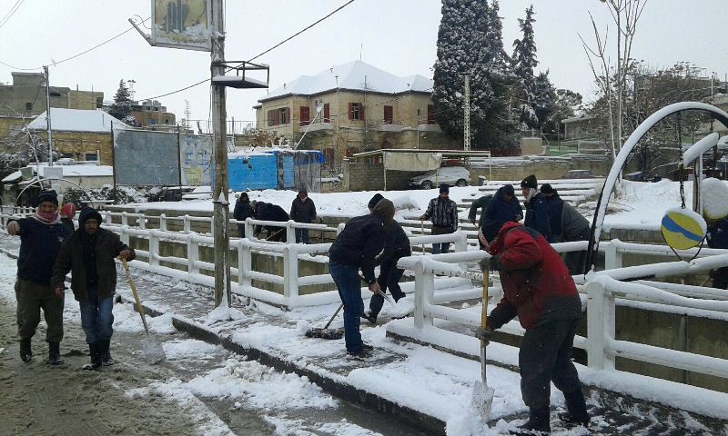 بلدية بعلبك جرفت الثلوج عن الأرصفة