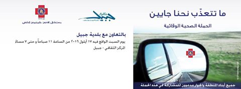بالتعاون مع بلديّة جبيل-بيبلوس، يتشرّف مستشفى القدّيس جاورجيوس الجامعي بدعوتكم للمشاركة في الحملة الصحيّة الوقائيّة “ما تتعذّب نحنا جايين”، وذلك يوم السبت الواقع في 17 أيلول الجاري من السّاعة 11 صباحاً حتّى 8 مساءً، في المركز الثقافي البلدي-جبيل.
