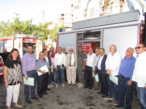 رئيس بلدية صيدا تسلم سيارتي إطفاء سويسريتين