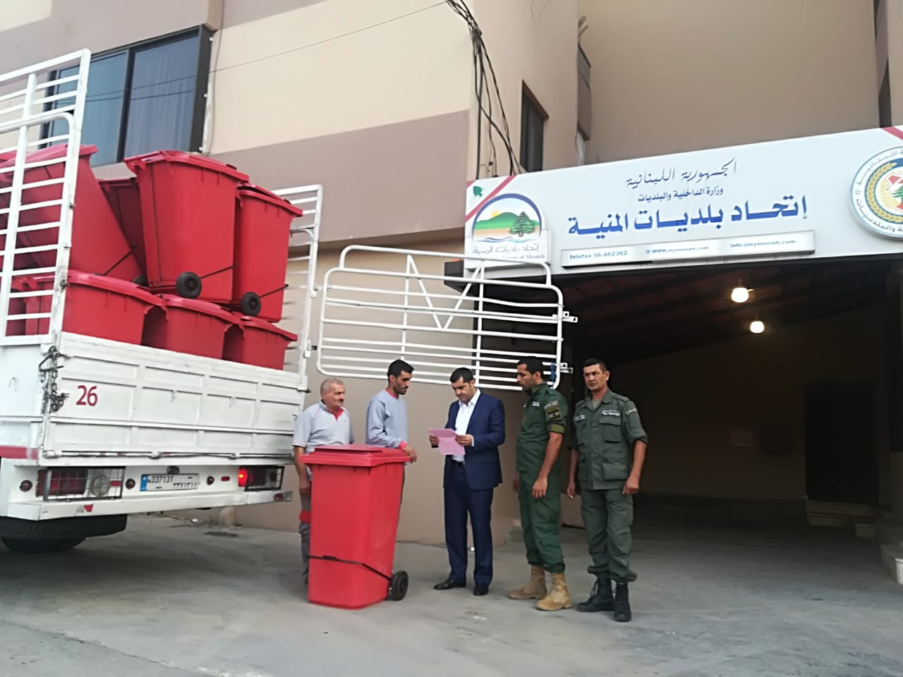 وقد استلم إتحاد بلديات المنية أيضا آليات نقل مخصصة لتجميع النفايات المفرزة من المنازل.