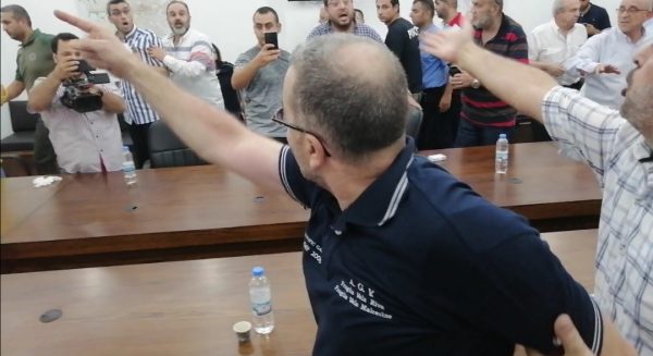 وبعد إعلان النتيجة ترأس المحافظ الجلسة طالبا استمرار انعقادها لانتخاب رئيس ونائب للرئيس، فحصل تشاجر بين بعض الاعضاء متهمين بعضهم بعضا بالغدر، وساد القاعة هرج ومرج، انحسب على أثرها قمر الدين و11 عضوا، فيما بقي 11 عضوا داخل القاعة، الامر الذي افقد الجلسة النصاب القانوني لانتخاب رئيس ونائب رئيس. ثم ترك نهرا القاعة في انتظار اكتمال النصاب او عدمه لاتخاذ القرار المناسب.