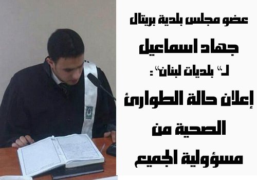 عضو مجلس بلدية بريتال جهاد اسماعيل لـ” بلديات لبنان”: إعلان حالة الطوارئ الصحية من مسؤولية الجميع