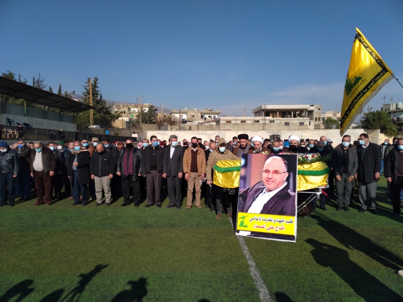 أقيمت المراسم بسبب ظروف كورونا في ملعب نادي التضامن الرياضي، وكانت كلمة تأبينية لمسؤول “حزب الله” في البقاع حسين النمر، وأدت ثلة من مجاهدي المقاومة قسم البيعة، وأقيمت الصلاة عن راحة نفسه.