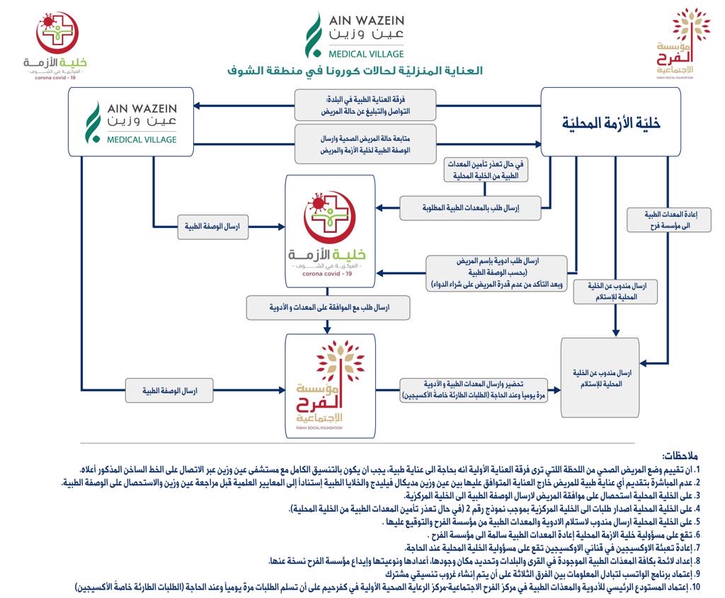 ويهدف المشروع المنظم بين خلية الأزمة المركزية في الشوف ومستشفى عين وزين (عين وزين ميديكال فيليدج)، ومؤسسة فرح الاجتماعية، إلى أن يكون برنامجا صحيا متقدما، يخفف من ثقل الأزمة على المستشفيات ويؤمن عناية صحية للمواطنين.