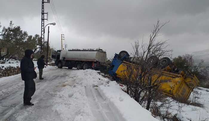 بلدية عيتنيت حذرت من سلوك طريق صغبين – مشغره بسبب إنزلاق شاحنة كبيرة