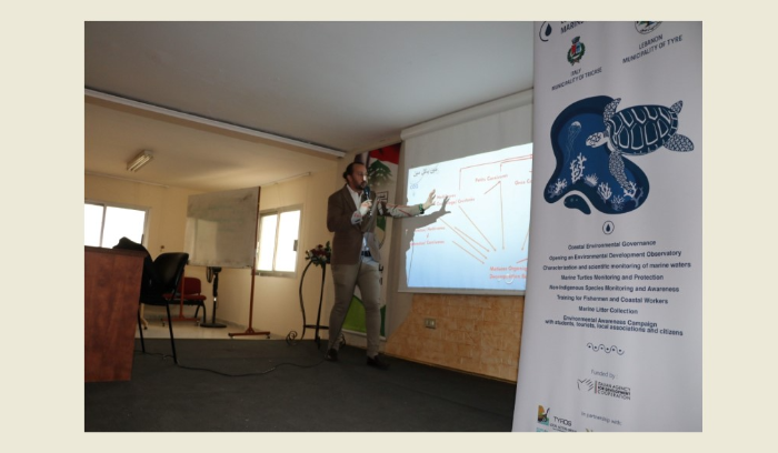 ثم عرض بدر الدين امام الحضور للتنوع البيولوجي وأهمية تعدد الأحياء البحرية التي تعيش ضمن بيئة طبيعية آمنة ضمن نطاق محمية شاطئ صور الطبيعية ومحمية شاطئ العباسية” .