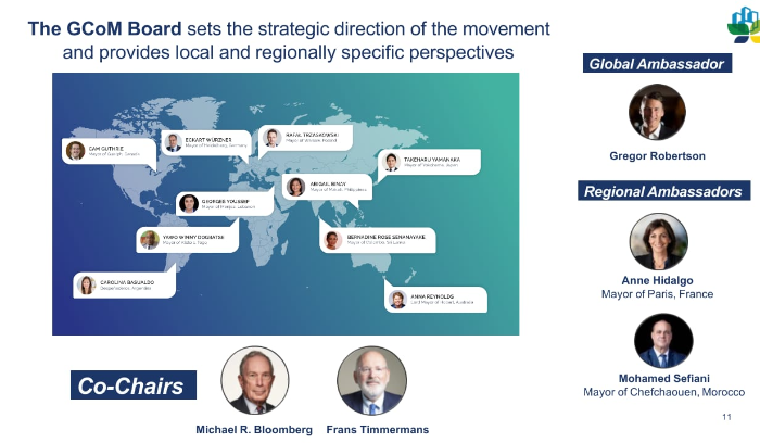 ويضم ميثاق رؤساء البلديات العالمي اكثر من 95 بالمئة من عواصم العالم والمدن الكبرى التي يتجاوز عددها ثلاثة عشر الف بلدية حول العالم”.
