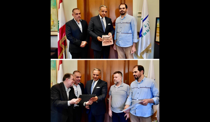 استقبل وزير الثقافة في حكومة تصريف الاعمال القاضي محمد وسام المرتضى في مكتبه في المكتبة الوطنية – قصرالصنائع، رئيس بلدية الغبيري معن الخليل يرافقه رئيس جمعية “قبس” الحاج علي زريق ،الشاعر الشيخ فادي عباس والمهندس حيدر زغيب، وجرى التداول في شؤون ثقافية واجتماعية ذات منفعة عامة.