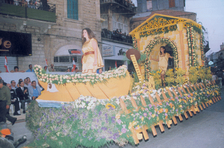 ثم بدأ موكب سيارات الزهور بسيارة للفنان سمير شمعون ترمز للجيش تحت شعار “العين الساهرة” وتوالت سيارات الزهور التي ترمز لفنانين وفرق غنائية عالمية.