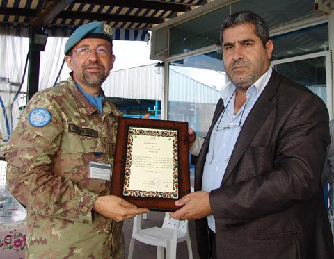 منح رئيس بلدية الحنية في قضاء صور المهندس حيدر عجمي “شهادة المواطنة الفخرية” لكتيبة رماحي اوستا السادسة في القوة الإيطالية الثانية في “اليونيفيل” الموجودة في المنصوري، في احتفال اقيم في مقر بلدية الحنية في حضور العقيد فولفيو بولي وعدد من ضباط وجنود الكتيبة الإيطالية الى أعضاء من المجلس البلدي وفاعليات المنطقة.