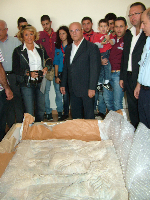 سلمت ماري كلود بيطار من مؤسسة “بروموريون” الى رئيس بلدية عين ابل فاروق بركات دياب لوحة صخرية اثرية نحت عليها الالهين “ابولون ” اي “البعل” و”ارتميست” اي “ديانا”، يتوسطها شجرة نخيل، بحضور حشد من ابناء البلدة والمهتمين.