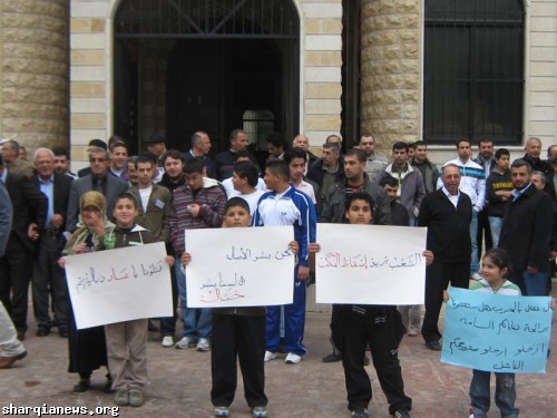 نفذ أهالي بلدة الشرقية في قضاء النبطية أعتصاما أمام باحة النادي الحسيني، رفضا لمشروع إقامة معمل للنفايات في خراج بلدة الكفور المحاذية للبلدة حيث يبعد المعمل 500 مترا عن المنازل السكنية في البلدة.
