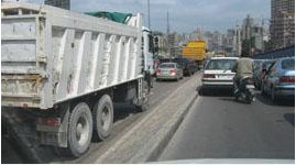 حوادث الشاحنات الكبيرة باتت تتكرر بشكل يومي على الطرقات الدولية، بشكل بات يستدعي اعادة ترتيب سير هذه الشاحنات في الاوقات والاماكن المحددة على الطرقات، اضافة الى التشدد في سرعتها الزائدة، كي لا تصير هذه الشاحنات <كالجبل الطائر> امام السيارات العابرة·· ومنعها من عبور الشوارع والطرقات الضيقة والزواريب والجسور المعلقة مثل جسر الكولا، الذي بالكاد يتسع لسيارتين صغيرتين بجانب بعضهما·