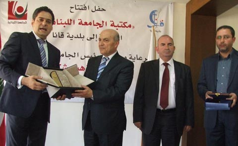 اقيم في بلدة قانا حفل افتتاح مكتبة الجامعة اللبنانية برعاية رئيس الجامعة اللبنانية الدكتور زهير شكر – المقدمة بمساهمة من الجامعة اللبنانية، في القصر البلدي للبلدة، في حضور ممثل حركة “امل” رئيس المكتب التربوي المركزي الدكتور حسن زين الدين، رئيس الهيئة التنفيذية لرابطة الأساتذة المتفرغين في الجامعة الدكتور شربل كفوري، رئيس مجلس المندوبين الدكتور وسيم حجازي، عمداء، مديري أساتذة الجامعة، رئيس بلدية قانا المحامي محمد عطية وحشد من المهتمين.