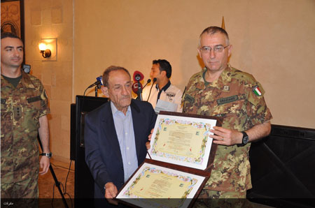 وختاما قدم الحسيني شهادة مواطنة للجنرال غريتسيانو ودرعا تقديرية،الذي بادره بدرع الجيش الايطالي، كما قدم رئيس البلدية دبوق درع بلدية صور.