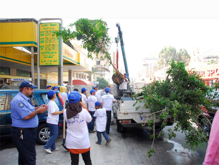 كلمات قليلة تفوه بها المهندس حاطوم، كانت كافية لتأخذ كل مجموعة مكانها، عناصر الشرطة، مجموعة إزالة التعديات، مجموعة رش المبيدات، فرق غرس الأشجار، عمال تنظيف الشوارع ومجموعات من المتطوعين والمتطوعات.