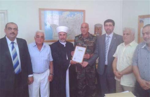 وفي ختام اللقاء، قدم رئيس «جمعية سفينة الخير» الشيخ يونس السيد للعقيد مخللاتي شهادة تقديرية باسم الجمعية عربون محبة وتقدير.