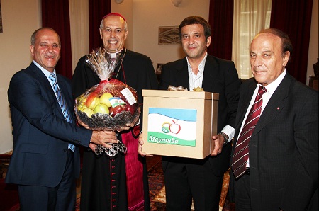رئيس بلدية ميروبا يقدم تفاح ميروبا هدية لبنان الى البابا