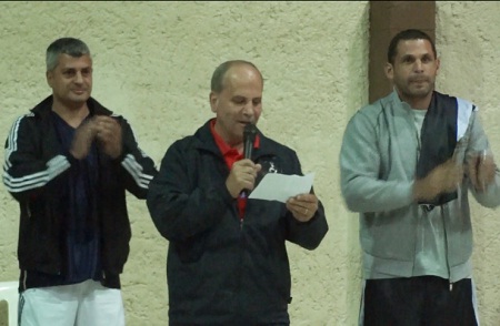 بداية النشيد الوطني ثم كلمة لكاهن الرعية الخوري بيار سمعان هنأ فيها البلدة بإعادة النشاط الرياضي اليها وشكر رئيس البلدية المحامي جورج رشيد سعاده على سعيه لإنهاء كل الأمور العالقة ولتعاونه ومساهمته في إعادة إحياء النادي في ميروبا. بعده تكلم جان طانيوس سعاده موجهاً تحية الى الرياضيين اللذين حملوا مشعل الرياضة في البلدة.