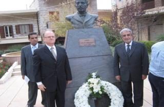 بعد ذلك وضع رئيس البلدية والشيخ ميشال بشارة الخوري اكليلا على النصب التذكاري للرئيس بشارة الخوري، ووضع مبارك ونجيب السعد اكليلا على النصب التذكاري للرئيس حبيب باشا السعد، وكذلك وضع مبارك وجان حاتم اكليلا آخر على نصب الرئيس الخوري مقدم من نجله بشارة خليل الخوري.