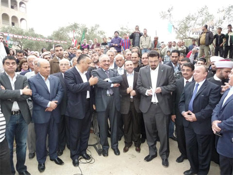 حضر الحفل الأمين العام لتيار “المستقبل” احمد الحريري ممثلا الرئيس الحريري،النائب محمد الحجار، الامين العام المساعد للعلاقات العامة في تيار المستقبل بسام عبد الملك، الامين العام المساعد صالح فروخ، منسق محافظة جبل لبنان الجنوبي في التيار محمد الكجك، مدير الادارة والمال وليد سرحال، رئيس جمعية كترمايا الخيرية احمد علاء الدين،أعضاء المجلس البلدي ومخاتير وأركان تيار المستقبل في الاقليم ومشايخ واهالي. وتوجه الحريري مباشرة لدى حضوره الى موقع البئر، حيث قام بقص شريط افتتاح الاحتفال، وشغل مولد الكهرباء المخصص للبئر وبدأت عملية ضخ المياه. بعدها اقيم الاحتفال وبدأ بكلمة ترحيبية لعضو بلدية كترمايا جمال معطي، ثم تحدث رئيس البلدية علاء الدين فاعتبر ان المشروع هو من أهم الانجازات في كترمايا، شاكرا كل من ساهم في اتمام المشروع، بدءا بعبدالله سعد الذي قدم قطعة الارض لحفر البئر دون مقابل ووضع بتصرف البلدية رخصة حفر البئر التي كان استحصل عليها من وزارة الطاقة، ورئيس “جمعية التنمية والبر الخيرية” الشيخ خالد ضاهر الذي كان اول المشجعين على المشروع ووضع امكاناته ودعمه لانجازه.