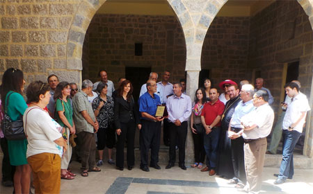 بعدها إنتقل الوفد إلى قلعة راشيا الوادي حيث كان بإستقباله رئيس بلدية راشيا سعد مهنا وأعضاء المجلس البلدي وفعاليات البلدة وبعد جولة على ارجاء قلعة الإستقلال قدم مهنا لرئيس الوفد الأب عطالله درع تقديري وشكر مهنا الأب عطالله وجمعية محترف راشيا على هذه الخطوة تجاه راشيا التي تمثل نموذج التلاقي والثقافات، ومن ثم أُقيم غداء على شرف الوفد الأوروبي في القلعة وكانت جولة على الغرف التي أعتقل فيها رجالات الإستقلال عام 1943.