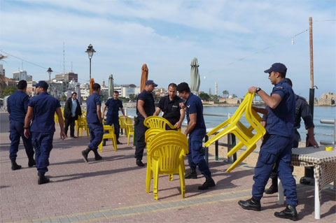 بلدية صيدا ازالت الخيم وطاولات المقاهي على الكورنيش البحري